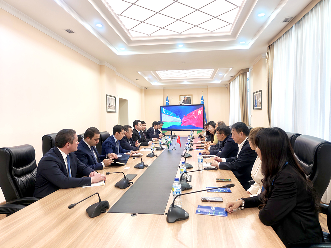 在塔什干,考察团与乌兹别克斯坦投资、工业与贸易部举行座谈交流,副部长伊尔扎特·卡西莫夫出席座谈并介绍情况。他表示,乌兹别克斯坦高度重视与中国企业的合作,当前正处于经济改革和工业化升级的关键时期,欢迎中国企业来乌投资兴业,特别是在新能源、基础设施建设、纺织业等优先发展领域。